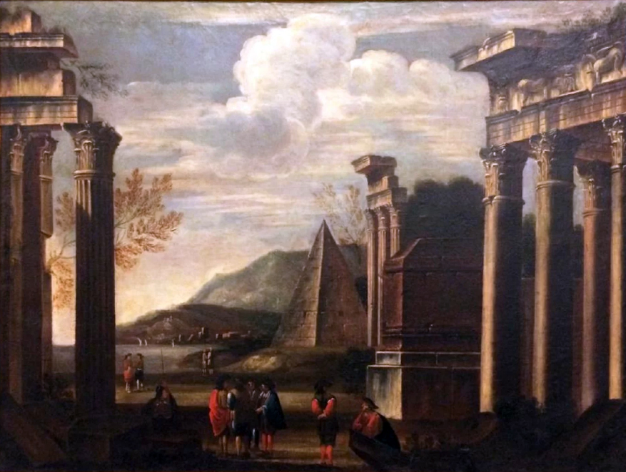 Ένας πίνακας (λάδι σε καμβά, 73,66 x 96,53 εκατ.) της Ιταλικής Σχολής, ίσως κάποιου οπαδού του Viviano Codazzi(1604-1670), εικονίζει ένα τοπίο, με αρχαία ελληνικά ερείπια και κάποιες φιγούρες ανθρώπων. Θεωρείται αρχιτεκτονικό ή εικαστικό capriccio (> καπρίτισιο).