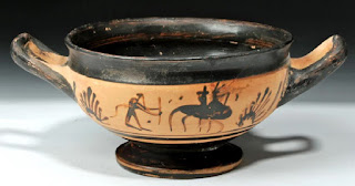 Εκτός και εάν εικονίζει μια θαλάσσια σκηνή, με δυο επιβαίνοντες επί θαλασσίου όντος κήτους (ομοιάζει με σώμα φάλαινας-υποβρύχιου), με πόδια θαλασσίου ζώου, που σέρνει πίσω του, σαν σε θαλάσσιο σκι, κάποιον άνθρωπο με ουρά, και κατευθύνονται κατά θαλάσσιου τέρατος…