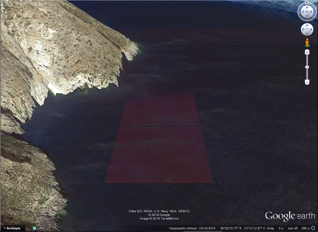 Έχοντας λοιπόν αυτές τις σκέψεις, άρχισα να γίνομαι πιο προσεκτικός στην πληροφορία που αναζητούσα, εμβαθύνοντας στην αρχή δημιουργίας της. ΠΟΙΟΣ; Αναζητώντας λοιπόν στο google earth κάτι που αφορούσε το έργο μου, στο νοτιότερο άκρο της Ελλάδος, στο ακρωτήριο Μαλέας, εντόπισα μια τοποθεσία η οποία για κάποιον ανεξήγητο λόγο εμφανίζει πάνω της δυο τετράγωνα αλλοίωσης της εικόνας. Μου έκανε εντύπωση αυτό και αναζητώντας πληροφορίες στο ίντερνετ, βρήκα πως αυτό συμβαίνει σε διάφορα σημεία του πλανήτη, κυρίως σε στρατιωτικές εγκαταστάσεις που πρέπει να αποκρυφθούν από το μάτι του δορυφόρου. Γιατί όμως σε εκείνο το σημείο;