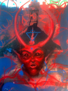 Το γκράφιτι που σχεδιάστηκε σε εξωτερικό τοίχο Δημοτικού κτιρίου σε Δημοτικό πάρκο στα Χανιά, έχει κεντρικό θέμα του τη μορφή του Εωσφόρου – Σατανά – Διάβολου, αποδιδόμενη εδώ με το πρόσωπο του Βάαλ ή Μολώχ, κύριας θεότητας του Σατανισμού και του Νεοπαγανισμού, κύριων παραθρησκευτικών ομάδων της «Πανθρησκείας». Άνωθεν της σχεδιασμένης κεφαλής επικάθεται η «Φλόγα της νόησης» και ένας κύλικας, το αρχαίο παγανιστικό σύμβολο της θηλυκότητας που παραπέμπει στη Μεγάλη Θεά (δυϊσμός), ενώ ανάμεσα στα κέρατα είναι σχεδιασμένη μια κρεμασμένη ανθρώπινη μορφή ως συμβολισμός της ανθρωποθυσίας ή της αυτοχειρίας. Το μπλε στρογγυλό σημάδι στο κέντρο του μετώπου, απεικονίζει το «τρίτο Μάτι», το έκτο τσάκρα, που έχει σχέση με τις ανατολικές τεχνικές διαλογισμού-Γιόγκα, ένα θρησκευτικό σύμβολο που παραπέμπει στην πνευματική κατάσταση «Νιρβάνα» και το οποίο είναι από τα ισχυρότερα στοιχεία θρησκειολογικού συγκρητισμού, είναι δηλαδή 100% «Πανθρησκεία».