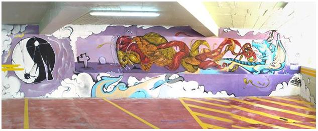 Στα γκράφιτι που σχεδιάστηκαν στους εσωτερικούς τοίχους νεότευκτου Δημοτικού πάρκινγκ στα Χανιά, συμπεριλαμβάνεται γκράφιτι 40 τ.μ. στο οποίο είναι αποτυπωμένο ως να μεσουρανεί το Ταοϊστικό σύμβολο «Γιν Γιανγκ», με διάμετρο 2 μέτρων, το μεγαλύτερο σε μέγεθος παραθρησκευτικό σύμβολο που έχει αποτυπωθεί ποτέ σε όλη την Ελλάδα, δίπλα στα πολύ μικρότερα σε μέγεθος γερμένα ταφικά σύμβολα του Χριστιανισμού και του Ισλαμισμού. Κεντρικό θέμα του γκράφιτι είναι ένας νεαρός στη μορφή κινέζικος δράκος σε κατάσταση έκστασης-διαλογισμού, υποστηριζόμενος από το εξ’ ουρανού γυναικείο χέρι της Θεάς Γκουάν-Γιν, της θηλυκής μορφής του Βούδα, ενώ από τα χέρια του κινέζικου δράκου εκπέμπεται μια μορφή ενέργειας προς το Γιν Γιανγκ.