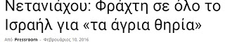 Ο πρωθυπουργός του Ισραήλ Μπέντζαμιν Νετανιάχου ανακοίνωσε το 2016 την πρόθεσή του να «περιβάλει όλο το Ισραήλ με έναν φράκτη» για να προστατεύσει το εβραϊκό κράτος από τα αραβικά «άγρια θηρία» (“wild beasts”).