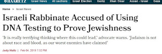 Το Ισραήλ επίσης χρησιμοποιεί DNA για να ελέγξει τους μετανάστες για να βεβαιωθεί ότι είναι φυλετικά καθαροί Εβραίοι. Αυτή την εβδομάδα, ο επικεφαλής ραβίνος του Ισραήλ David Lau παραδέχτηκε για πρώτη φορά δημοσίως ότι το Αρχιραββινάτο και τα κρατικά ραβινικά δικαστήρια – που ελέγχουν την απονομή της ιθαγένειας και τα οποία επιτρέπεται να παντρεύουν Εβραίους στο Ισραήλ – χρησιμοποιούν τεστ DNA για να καθορίσουν εάν κάποιος είναι Εβραίος.