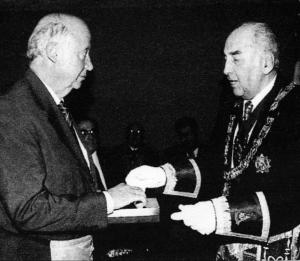 Η φωτογραφία τον δείχνει στη Μεγάλη Στοά να βραβεύεται
