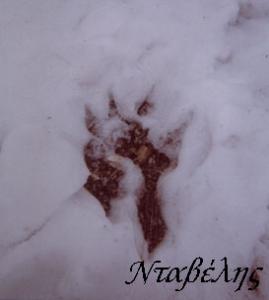 Ένα από τα πολλά περίεργα ίχνη που συναντά κανείς στην χιονισμένη Πεντέλη. Το συγκεκριμένο ίχνος ήταν ένα και μοναδικό στην εκεί περιοχή και αυτό ήταν που μου έκανε τρομερή εντύπωση. Η φωτογραφία τραβήχτηκε το χειμώνα του 2003