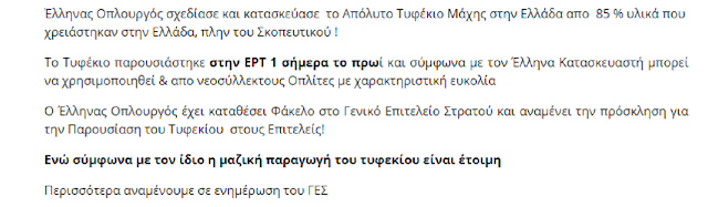 Ελληνας οπλουργος κατασκευασε το καλυτερο οπλο στον κοσμο ! Θα επιτρεψουν ομως την μαζικη παραγωγη του, ή θα το παρουν ξενοι, θα το παραγουν και θα μας το μοσχοπουλησουν;