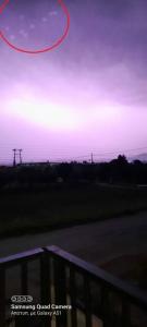 Η ιστορία προέρχεται από μαρτυρία γυναίκας στα περίχωρα Θεσσαλονίκης στις 26 Νοέμβρη 2021 περίπου στις 7 το απόγευμα.Μου εμπιστεύτηκε μαζί με την ιστορία και την παρακάτω φωτογραφία..Η κοπέλα λέει...''Έδειχνε να έχει κακοκαιρία καθώς είχαν μαζευτεί πολλά σύννεφα στον ουρανό χωρίς βροχή, όμως οι αστραπές- λάμψεις αυτές που έβγαιναν μέσα από συγκεκριμένα σύννεφα συνεχόμενα με ξένησαν και θέλησα να τα αποθανατήσω πιστεύοντας ότι σαν εικόνα θα αξίζει η καταγραφή ενος τέτοιου κεραυνού. Με σκοπό λοιπόν να καταγράψω τις εκρήξεις που συνέβησαν μέσα στα σύννεφα και χωρίς να υπάρχει τίποτε άλλο αισθητό στην αντίληψη μου με γυμνό μάτι τράβηξα κάποιες φωτογραφίες την ώρα που ερχόταν η λάμψη και τότε σε μια από αυτές είδα έναν ''στόλο'' από 9 περίεργα αντικείμενα εκ των υστέρων...
