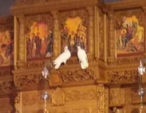Αφήνοντας ό Ιερέας τα δύο κατάλευκα περιστέρια, αυτά πήγαν και κάθισαν