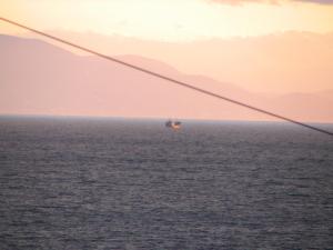 2) Ο Ήλιος δύει (δεξιά από το Καράβι και περίπου 10μ. πάνω από το ύψος του).