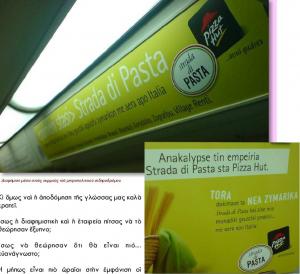 Και όμως ναι η αποδόμηση της γλώσσας μας καλά κρατεί. Ίσως η διαφημιστική και η εταιρεία πίτσας να το θεώρησαν έξυπνο;