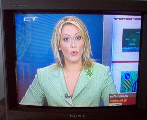Δείτε την καρφίτσα στο πέτο της εκφωνήτριας...