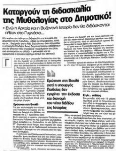 Τέλος καὶ μὲ τὴν διδαχὴ τῆς Μυθολογίας μας στα σχολεία!
