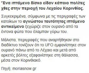 UFO στην περιοχή του Λεχαίου Κορινθίας