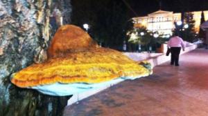 Ερωτηματικά προκαλεί φωτογραφία που τραβήχτηκε αργά το βράδυ της Δευτέρας και κάνει τον γύρο του internet. Πρόκειται για ένα τεράστιο μανιτάρι, το οποίο αναπτύχθηκε στον κορμό δέντρου στην κάτω πλευρά της πλατείας Συντάγματος, μπροστά σε ένα περίπτερο.