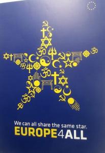 Συνδυάζει τα σύμβολα πόλων των θρησκειών μέσα σε ένα αστέρι με το ρητό: "Μπορούμε να μοιραστούμε όλοι το ίδιο αστέρι".