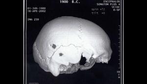 Οι Έλληνες ειδικοί, εξέτασαν το κρανίο σε αξονικό τομογράφο για να μελετήσουν τη δομή του οστού όπου είχε γίνει η επέμβαση. Η οπή είχε σχήμα ωοειδές με διαστάσεις 8 επί 7,5 χιλιοστά και τα άκρα της ήταν κυρτωμένα, υποδεικνύοντας ότι η διαδικασία της επούλωσης είχε ξεκινήσει μετά την επέμβαση.