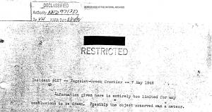 Δυστυχώς δεν έχουμε την αναφορά αλλά το σχολιασμό της. Συνέβη το 1948 στα Ελληνογιουγκοσλαβικά σύνορα. Πιθανόν μετεωρίτης