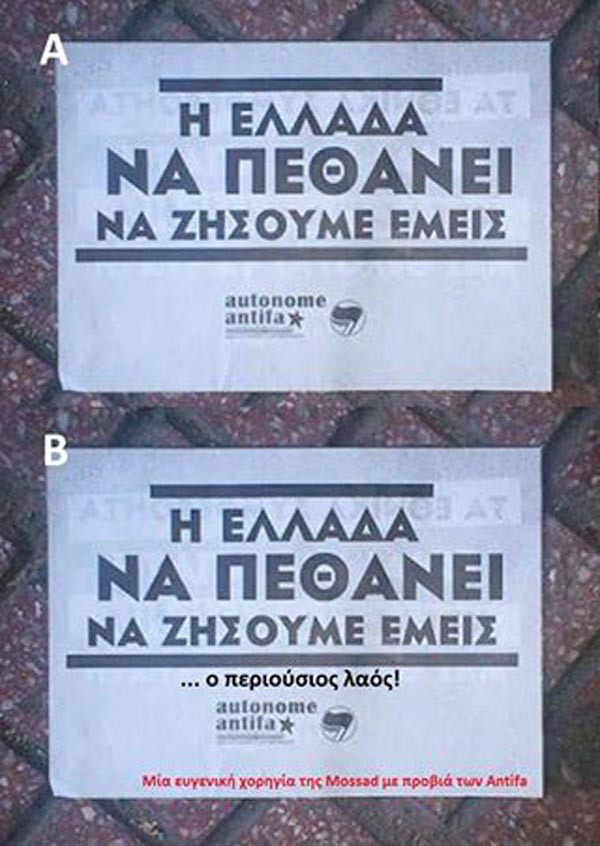 Όσα μωρά κι αν κάψει ζωντανά η Ισραηλινή Αεροπορία (429 μωρά έκαψαν πριν ένα μόλις έτος) οι πράκτορες που παριστάνουν τους …«Έλληνες αντιφασίστες» θα είναι εκεί για να διαδηλώνουν υπέρ των δολοφόνων, να μοιράζουν ανθελληνικά φυλλάδια και να καίνε Ελληνικές σημαίες και Ελληνικές επιχειρήσεις.