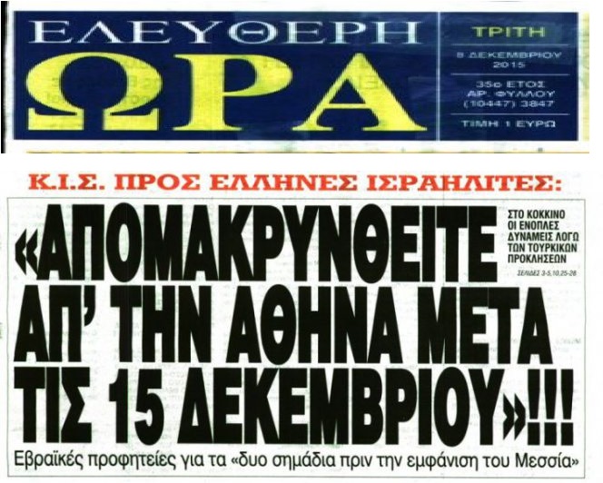 ΕΛΕΥΘΕΡΗ ΩΡΑ: Κ.Ι.Σ ΠΡΟΣ ΕΛΛΗΝΕΣ ΙΣΡΑΗΛΙΤΕΣ!!! "Απομακρυνθείτε απ' την Αθήνα μετά τις 15 Δεκεμβρίου"!!!!