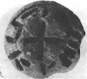 Λίθινο φακοειδές "γραπτό" αντικείμενο εκ περιοχής Φαρσάλων (2000 π.Χ. περίπου). Συγγενείς γραφή προς την γραμμική Β.