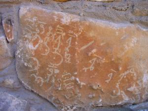 Είχα την εντύπωση πως την είχα βάλει αυτή την αναφορά αλλά ή σβήστηκε ή δεν θυμάμαι καλά. Το 2005 σε ένα εκκλησάκι βρήκαμε αυτή την πέτρα με αυτή την γραφή. Το εκκλησάκι είχε χτιστεί τότε με παλιά υλικά που βρίσκονταν στην περιοχή. Ρώτησα κάποιους για αυτή την γραφή και άλλος μου είπε πως είναι πως είναι τουρκική, άλλος πως είναι αραβική. Είναι όμως; Εχει κανείς ιδέα τι ειναι αυτοι οι χαρακτήρες;