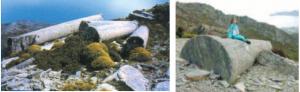 Μερικοί από τους κολοσσιαίους μονολιθικούς κίονες. Αριστερά από τη θέση Κύλινδοι και δεξιά ένας από τους κίονες των Μύλων.