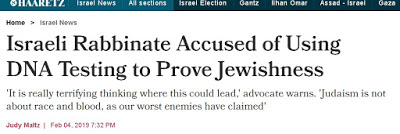 Το Ισραήλ επίσης χρησιμοποιεί DNA για να ελέγξει τους μετανάστες για να βεβαιωθεί ότι είναι φυλετικά καθαροί Εβραίοι. Αυτή την εβδομάδα, ο επικεφαλής ραβίνος του Ισραήλ David Lau παραδέχτηκε για πρώτη φορά δημοσίως ότι το Αρχιραββινάτο και τα κρατικά ραβινικά δικαστήρια – που ελέγχουν την απονομή της ιθαγένειας και τα οποία επιτρέπεται να παντρεύουν Εβραίους στο Ισραήλ – χρησιμοποιούν τεστ DNA για να καθορίσουν εάν κάποιος είναι Εβραίος.