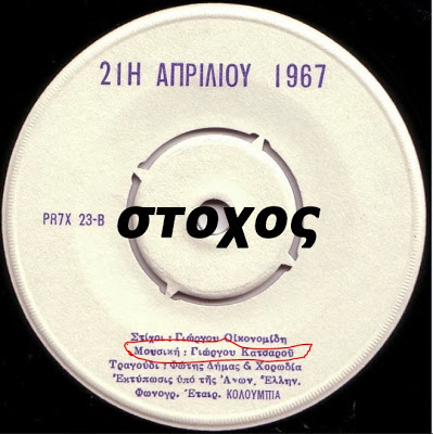 Μετά την αποψινή αποκάλυψη του «Στόχου» αποστομώνονται οριστικώς τα παπαγαλάκια που θέλουν να αλλάξουν την ιστορία και να μάς πείσουν ότι οι στίχοι του Ύμνου της «Δικτατορίας» είναι του γνωστού κονφερανσιέ Ηλία Καραμανέα και η μουσική του αρχιμουσικού Α. Ρεμούνδου...